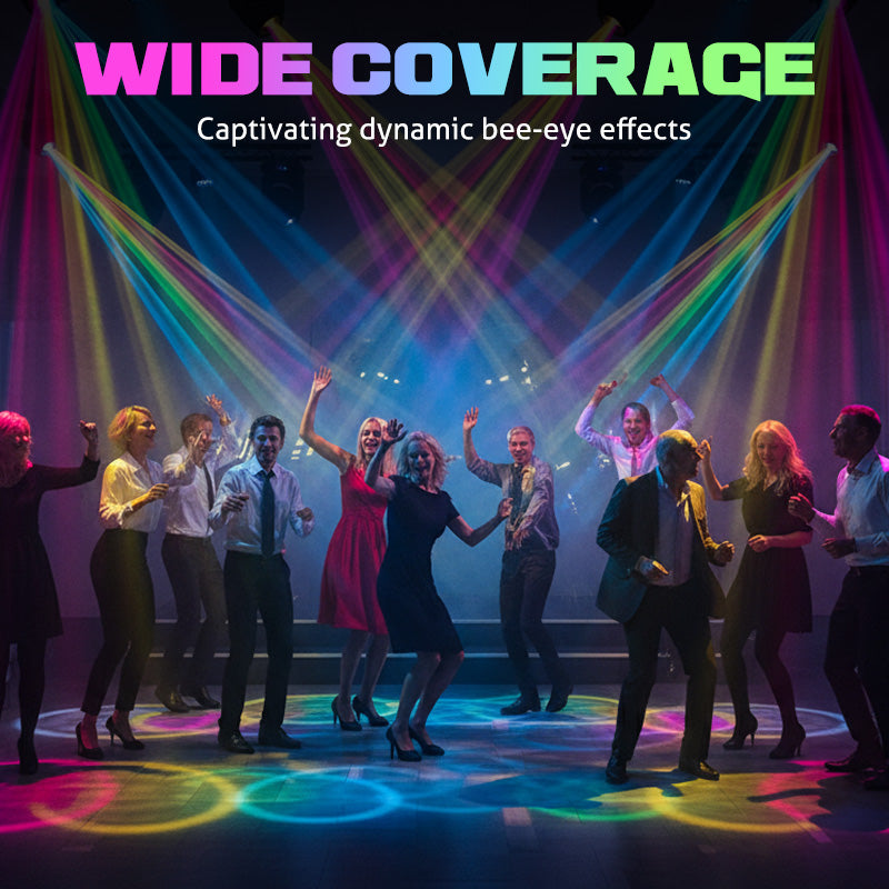 LENTILLE ŒIL D'ABEILLE INTÉGRÉE - La lentille centrale œil d'abeille produit un effet de lumière envoûtant grâce à de multiples faisceaux précis. Elle ajoute de la profondeur et de la complexité à votre éclairage, offrant des visuels de qualité professionnelle pour les scènes, les clubs et les soirées.