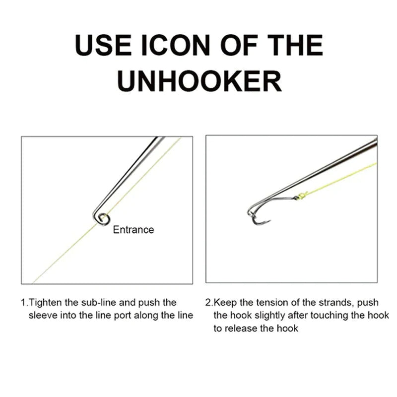 - L’outil de pêche 3-en-1 combine un attache-boucle, un outil de nouage rapide et un extracteur d’hameçon.