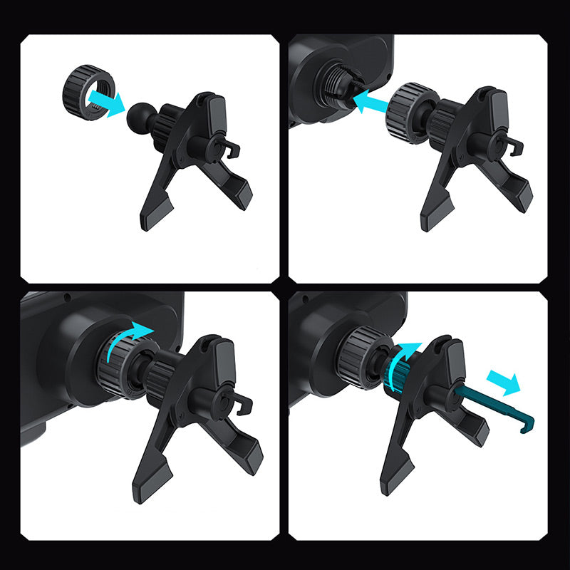SUPPORT POUR VENTILATION DE VOITURE : Se fixe de manière sécurisée à la plupart des bouches d'aération de voiture, offrant une solution de montage stable et pratique sans obstruer votre vue pendant la conduite.