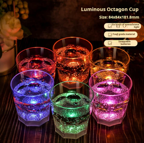 ÉCLAIRAGE INTELLIGENT - Le verre s'illumine automatiquement lorsque vous versez une boisson, transformant votre verre en une explosion de couleurs. L'alliance parfaite de la fonctionnalité et de l'esthétique, ajoutant une touche de magie à vos soirées.