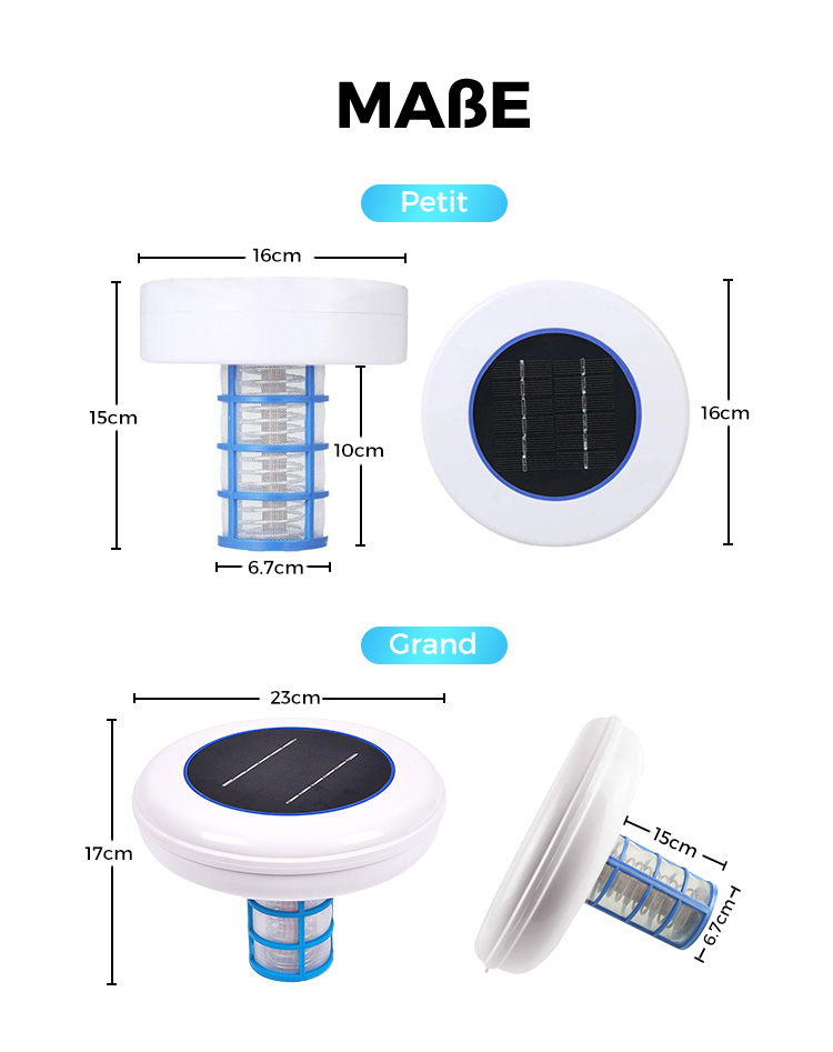 Mit dem Solar-Pool-Ionisator wird Ihr Poolwasser kristallklar und rein, ohne den Einsatz von schädlichen Chemikalien. Dieser innovative Ansatz basiert auf Solarenergie, was bedeutet, dass Sie nicht nur umweltfreundlich handeln, sondern auch die Betriebskosten deutlich senken können. Ihr Pool wird mit der natürlichen Kraft der Sonne behandelt, was nicht nur gut für die Umwelt, sondern auch für Ihre Gesundheit ist, weil Sie so den Kontakt mit aggressiven Chemikalien vermeiden .