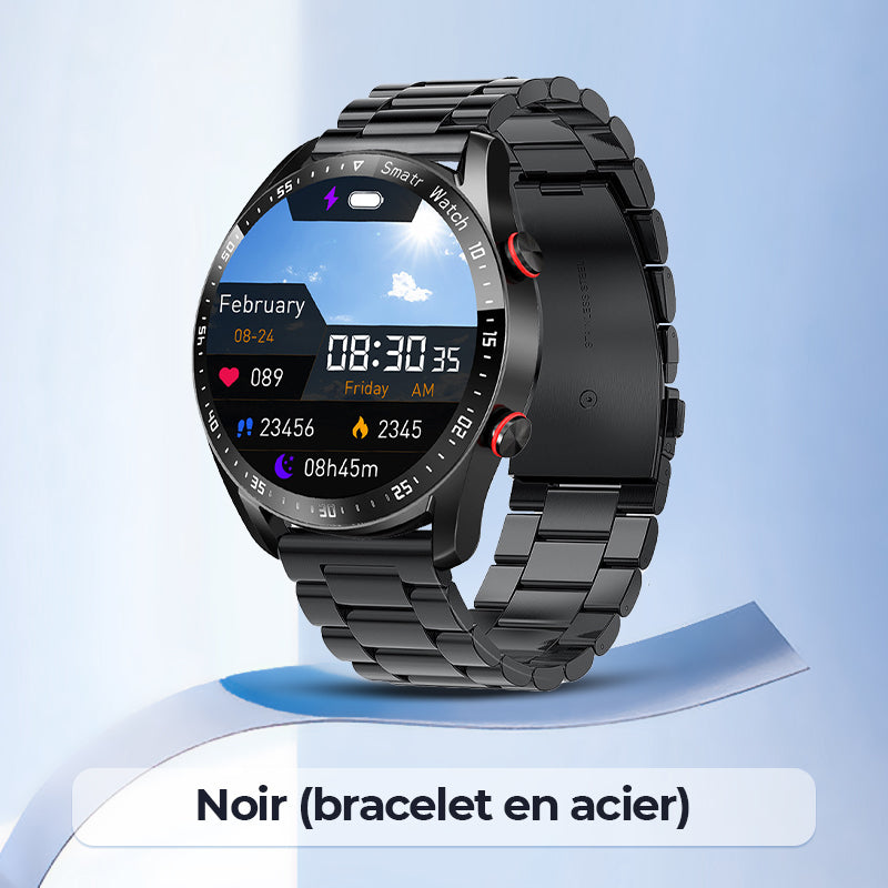 Vous permet de répondre aux appels et de composer directement sur votre montre intelligente via une connexion Bluetooth. Vous ne manquerez jamais un appel ou un message important lors d'une réunion ou d'une session de formation.