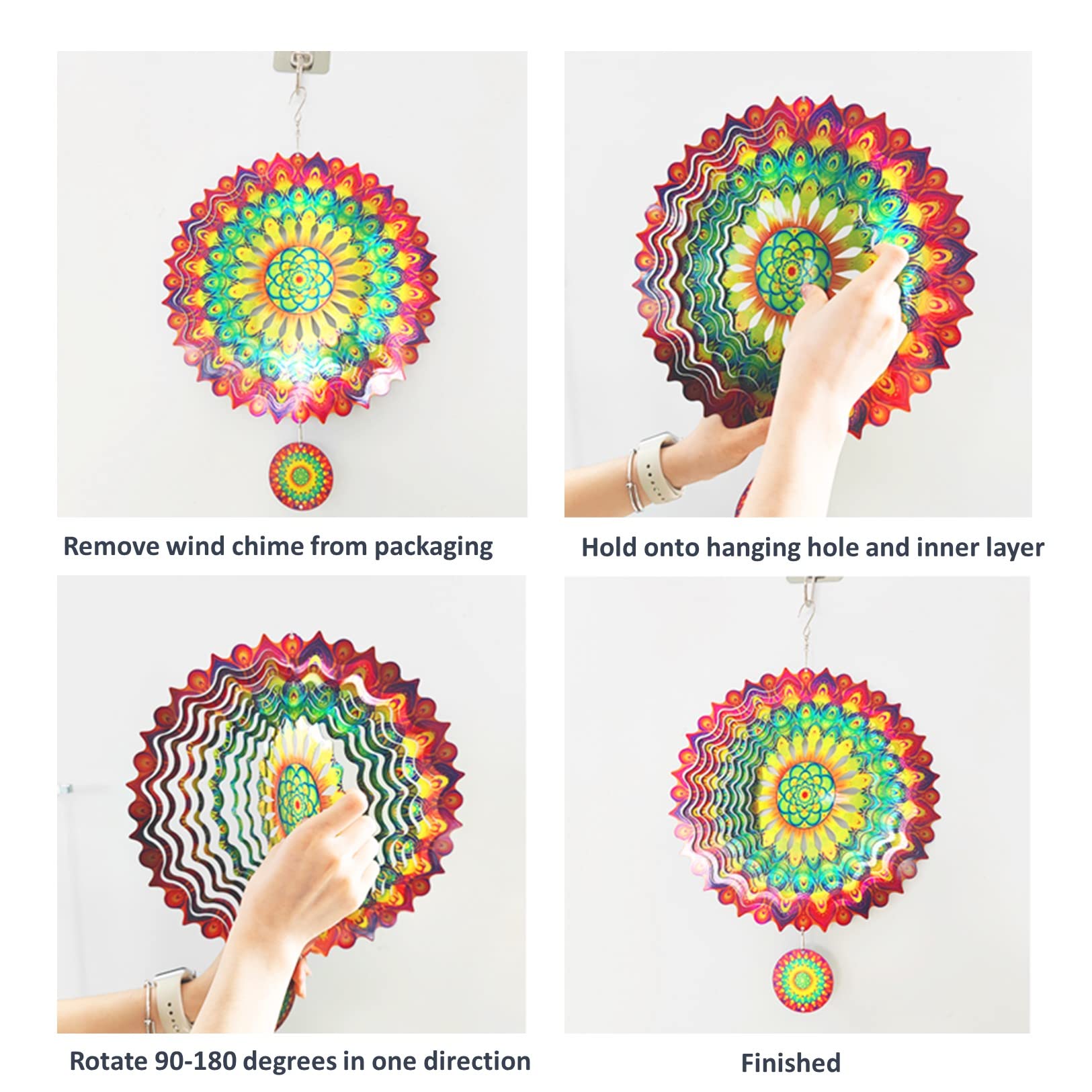 Facile à Installer : Le moulin à vent est livré à plat avec des instructions sur la façon de le plier et de le façonner. Il comprend également un crochet métallique en forme de S pour une suspension facile. Vous pouvez l'installer rapidement et facilement à l'emplacement souhaité et en profiter immédiatement.