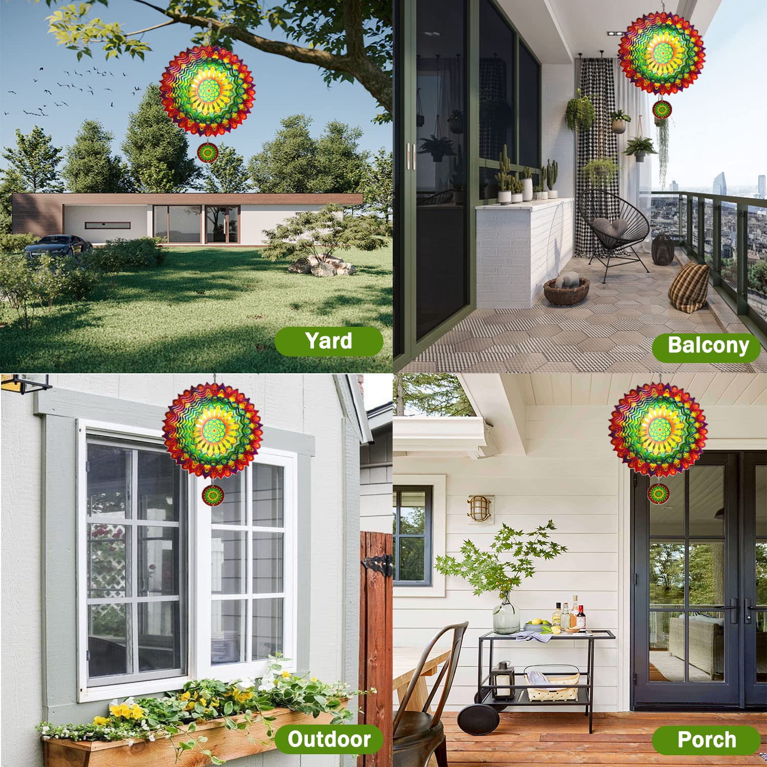 Décoration Polyvalente : Le moulin à vent est parfait pour toute occasion, comme les anniversaires, les mariages, la fête des Pères, la fête des Mères, les pendaisons de crémaillère, la Saint-Valentin, Noël et les anniversaires. C'est un cadeau joyeux pour les grands-parents, la famille, les meilleurs amis, les amis, les voisins et les connaissances. Vous pouvez le suspendre partout où vous le souhaitez, comme des lampes, des arbres, des murs, des balcons, des fenêtres et des jardins. Vous pouvez également l'utiliser à l'intérieur avec un moteur électrique.